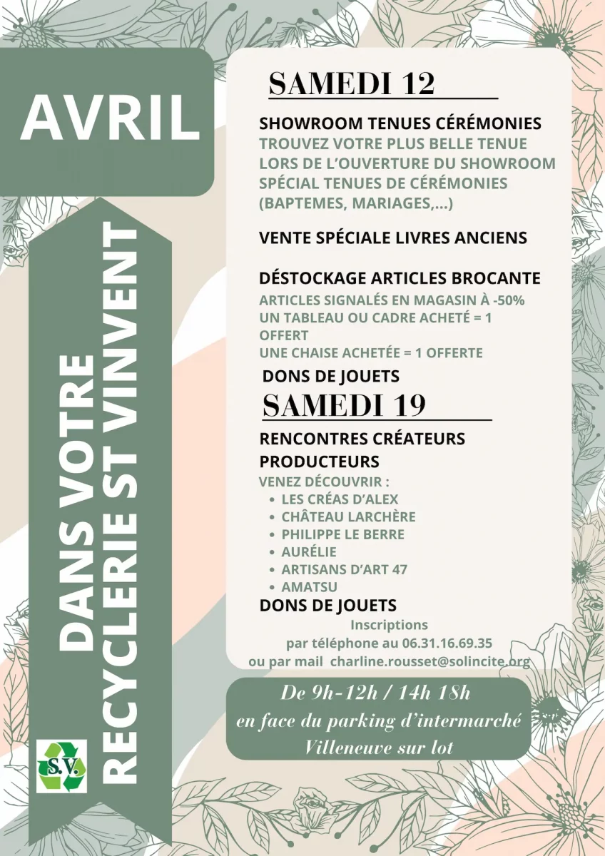 Amatsu sera présent le Samedi 19 Avril à la recyclerie de St Vincent à Villeneuve sur Lot de 9h à 12h et de 14h à 18h en face du parking d’Intermarché.